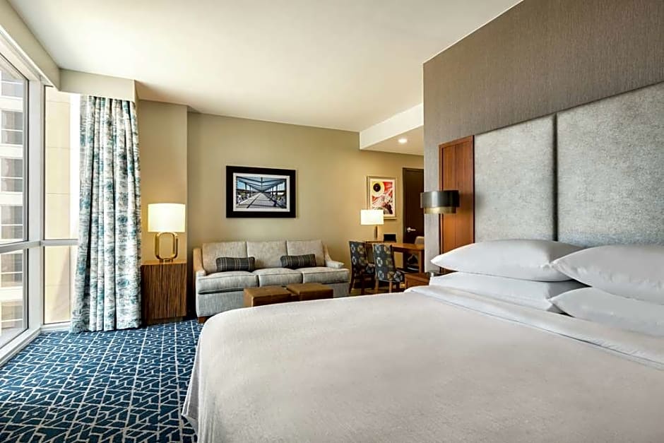 With 272 reviews, Embassy Suites By Hilton Denton Convention Center has garnered a reputation for providing exceptional service and comfort to its guests. The hotel offers a variety of accommodations, ranging from non-smoking rooms to city view suites, each equipped with modern amenities such as free WiFi, a flat-screen TV, and a coffee maker. Guests can also take advantage of the on-site fitness center, restaurant, and room service for added convenience.